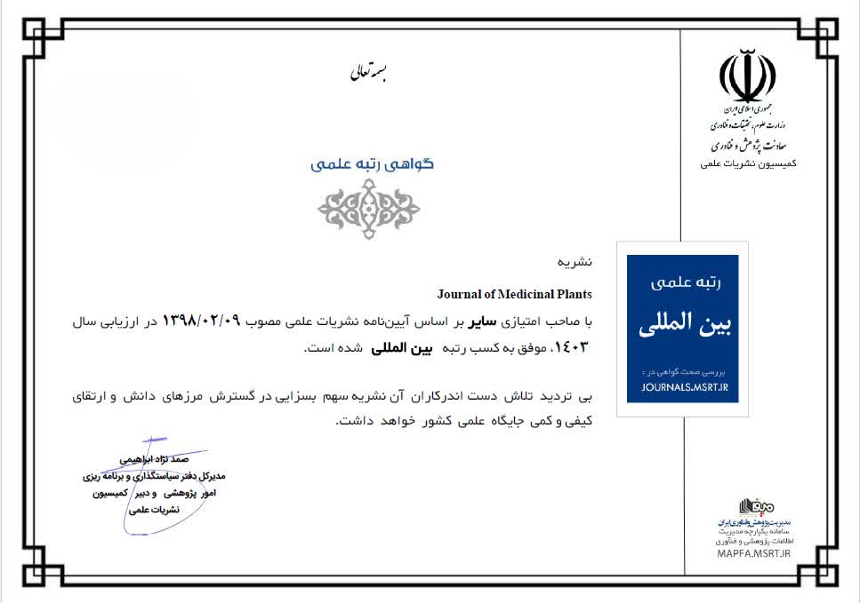 افزودن نام نشریه گیاهان دارویی (Journal of Medicinal Plants) به لیست نشریات وزارت علوم، تحقیقات و فناوری